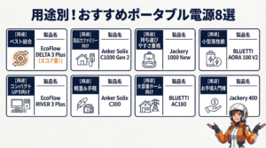| 💼 持ち運びやすさ重視 | Jackery 1000 | ¥119,800 | 92/100 |